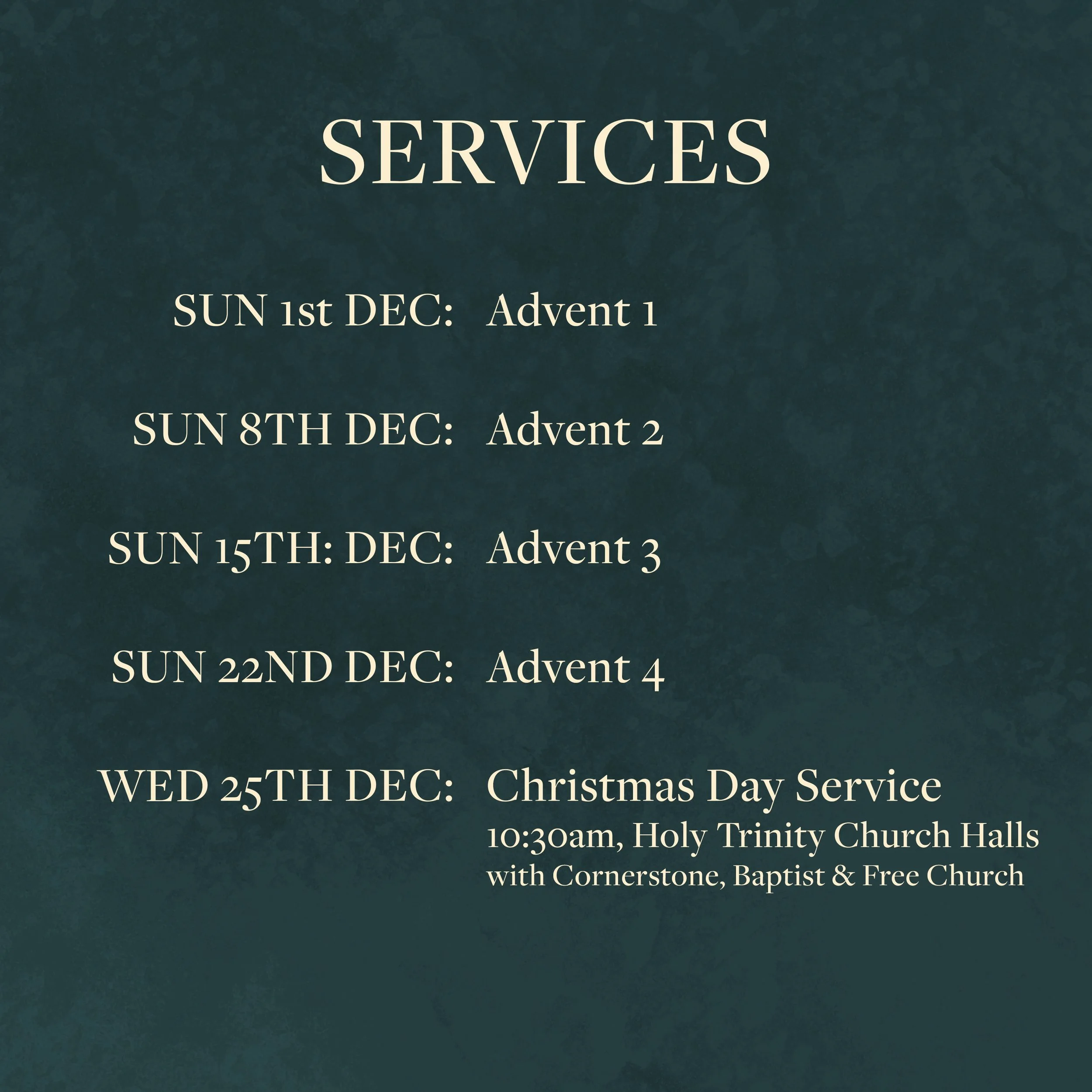 On Christmas Day we will be gathering with a few of the other churches in St Andrews for a service together. It’s at Holy Trinity Church Halls - read that again, church halls, not the main church! At 10.30am on Christmas morning. We’d love to see you!